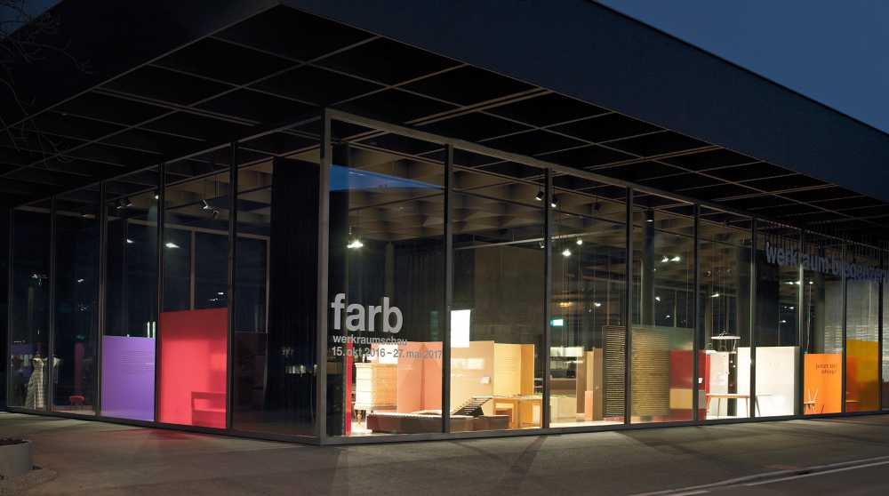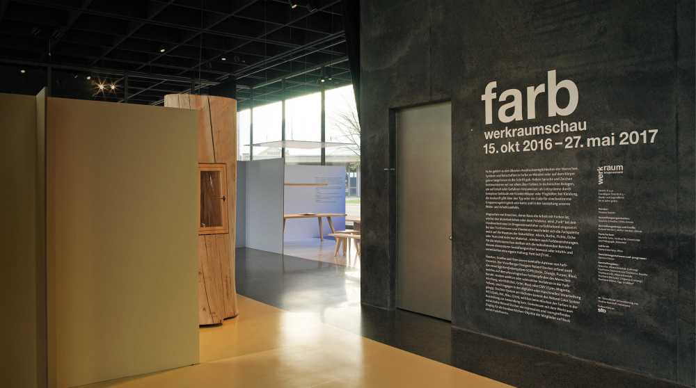 Beschriftung und technische Umsetzung der Werkschau Farb mit einem begehbaren Farbkreis in Zusammenarbeit mit dem Gestalter Roland Stecher. Werkraum Bregenzerwald