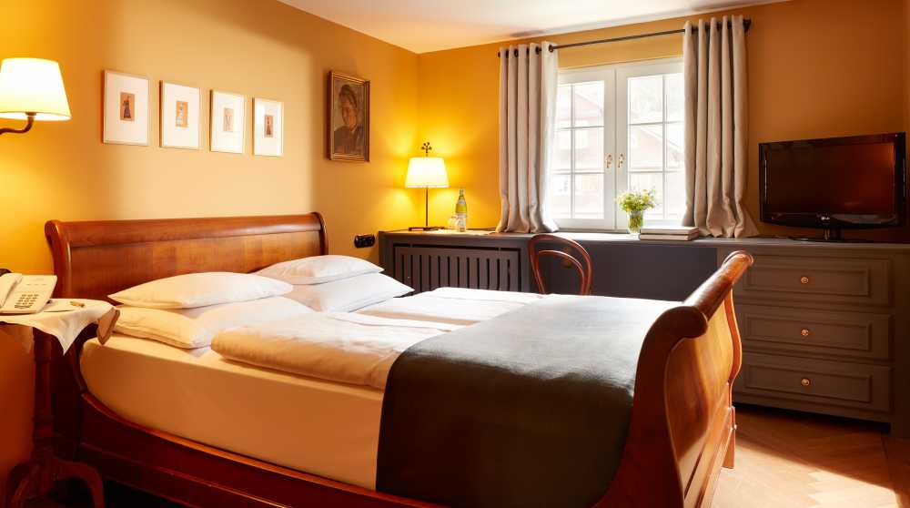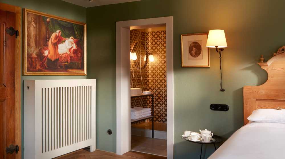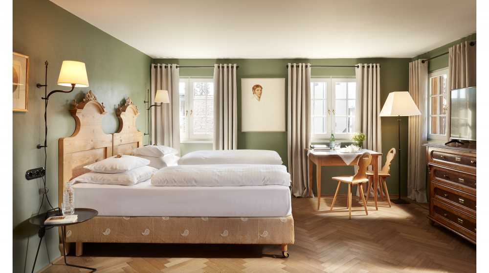 Neue Farben für die historischen Räume des 265 Jahre alten Gasthofes im Bregenzerwald. Farbkonzept in Zusammenarbeit mit Innenarchitektin Marika Marte. Hotel Hirschen Schwarzenberg